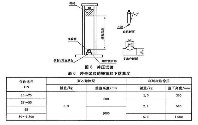 使用方法:從檢測的涂塑鋼管任意位置切取長約100ml的試件,在常溫下(如圖)規(guī)定沖擊試驗(yàn),此時焊縫應(yīng)安置在與沖擊面相反的方向,試驗(yàn)后,檢查內(nèi)涂層有無裂紋或剝離出現(xiàn)。
