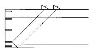 安裝掃查架至焊縫兩側(cè)的合適位置。轉(zhuǎn) 動(dòng)掃查架轉(zhuǎn)柄,一前一后的串列探頭朝 相反方向移動(dòng),按掃查示意圖,沿焊縫 進(jìn)行上下掃查。