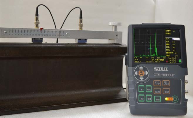 ■ 專注鋼軌焊縫探傷 ■ 體積小巧方便攜帶 ■ 一鍵切換操作簡便 ■ 實(shí)時(shí)記錄電影回放 CTS-9008HT鋼軌焊縫超聲探傷儀——輕便、易用、可靠 根據(jù)鐵道部標(biāo)準(zhǔn)《TB/T2658.21-2007鋼軌焊縫超聲波探傷作業(yè)》特制的鋼軌焊縫超聲探傷儀,可同時(shí)連接鋼軌焊縫超聲探傷所需的各種探頭,預(yù)置探傷 參數(shù),現(xiàn)場探傷,一鍵切換,快速簡便,性能卓越,功能強(qiáng)大,是鋼軌焊縫超 聲探傷的首選。 產(chǎn)品特點(diǎn): * 小巧輕便·整機(jī)(含電池)重量約1.38Kg,野外作業(yè)輕松自如。 * 可同時(shí)連接9個(gè)鋼軌焊縫檢測用超聲探頭,一鍵切換,快速進(jìn)行軌頭、軌腰、軌底不同區(qū)域的探傷。 * 操作簡易· 按鍵少,定義明確,實(shí)現(xiàn)單手握持操作。 * 超低功耗· 標(biāo)配鋰聚合物電池,提供長達(dá)7小時(shí)的連續(xù)工作時(shí)間。 * 性能強(qiáng)勁· 缺陷檢出率高、滿足鋼軌焊縫的精確探傷。 * 動(dòng)態(tài)記錄·可選擇機(jī)內(nèi)存儲(chǔ)或U盤存儲(chǔ)。機(jī)內(nèi)存儲(chǔ)可轉(zhuǎn)存至U盤。具有電影回放功能。 * 最高采樣速率240MHz,測量分辨率0.1mm。 * 工作頻率范圍0.5~8MHz,靈敏度余量高達(dá)65dB。 * 人性化的探傷報(bào)告,缺陷性質(zhì)、傷損位置、加工工藝等快速地標(biāo)注,后期分析直觀明了。 * 20~500Hz分10檔可調(diào)的脈沖重復(fù)頻率,避免探傷過程中出現(xiàn)混響信號(hào)。 * 采用定時(shí)掃描方式形成B 型圖像。 * 配合峰值回波、圖像凍結(jié)功能,快速確定缺陷最高波,探傷更高效。 * DAC曲線,配合回波比較功能,使不同距離不同波幅的回波定量更簡便。 * 寬視角、高亮度、高清晰度的5.7″進(jìn)口彩色TFT顯示屏,細(xì)節(jié)一覽無遺。 * 不同的顏色方案,滿足不同使用場景和習(xí)慣的需求。 應(yīng)用舉例: